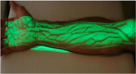 این وسیله مسیر عبور عروق را به کاربر نشان می دهد و می تواند موجب افزایش سرعت عمل در رگ گیری و کاهش خطا شود.